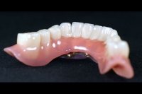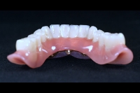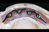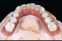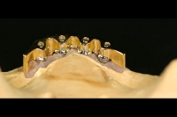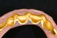 Stege gefräst, Steghülsen aus Galvano-Gold (AGC-Wieland) . Die Kunststofffertigst ellung erfolgte mit Phonares-Zähnen.