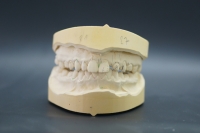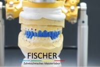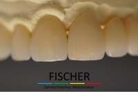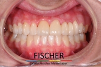 Der Behandler entschloss sich dazu die Fehlstellung mithilfe von Veneers, Onlays in Presskeramik (e.maxPress) und einer Zirkonbrücke auszugleichen. Nach der Anfertigung eines Wax-Ups, konnte dem Patienten vorab schon einmal ein Provisorium eingegliedert werden, um ihn an die zukünftige Bisssituation zu gewöhnen.